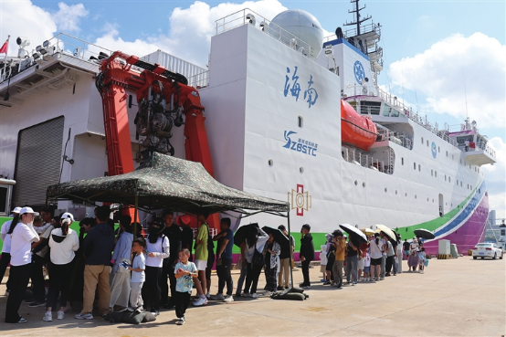 公眾排隊(duì)參觀“探索三號(hào)”科考船