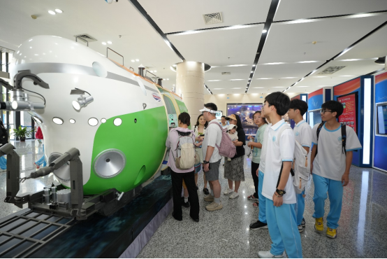 ????科技之光主題活動(dòng)通過科普講座、深海裝備展和深海VR體驗(yàn),向公眾展示深海探索的科技突破。郭威研究員帶來的《擁抱海洋,解密深海》科普講座,從認(rèn)識(shí)海洋講起,介紹了人類探索海洋的歷史,分享了擁抱海洋和解密深海而研制的各種“交通工具”,以及“搭乘”這些“交通工具”進(jìn)行全海深和全海域的探索,最后以學(xué)業(yè)發(fā)展和社會(huì)經(jīng)驗(yàn)雙重成長(zhǎng)路徑為例,引導(dǎo)同學(xué)們樹立正確的人生觀、成才觀、擇業(yè)觀 ,?鼓勵(lì)同學(xué)們?cè)趭^斗中創(chuàng)造精彩人生。